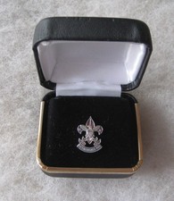 Boy Scout Lapel Pin in original Box Scroll Says Distinguised Pro Sterling